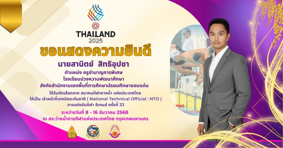 ได้รับคัดเลือกจาก สมาคมกีฬาทางน้ำ แห่งประเทศไทย ให้เป็น เจ้าหน้าที่เทคนิคระดับชาติ (National Technical Official:NTO)